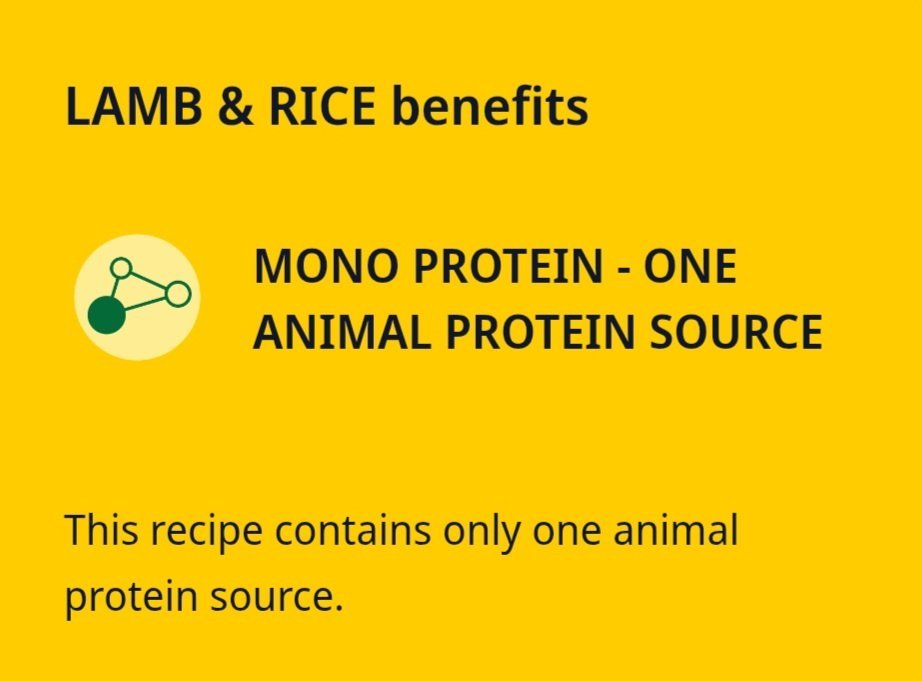 rice 53%, dried lamb protein 25%, beet fibre, oils and fats, partially hydrolysed yeast, carob meal, minerals